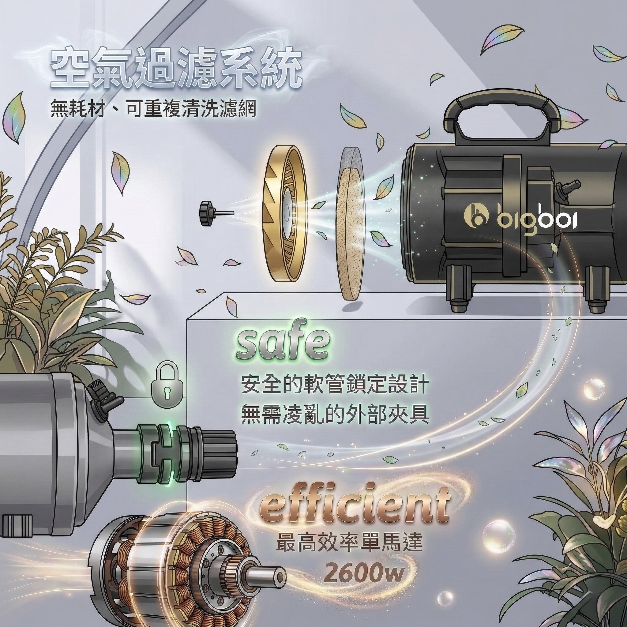 ◆ 超強馬達、低噪音,兩種吹嘴替換