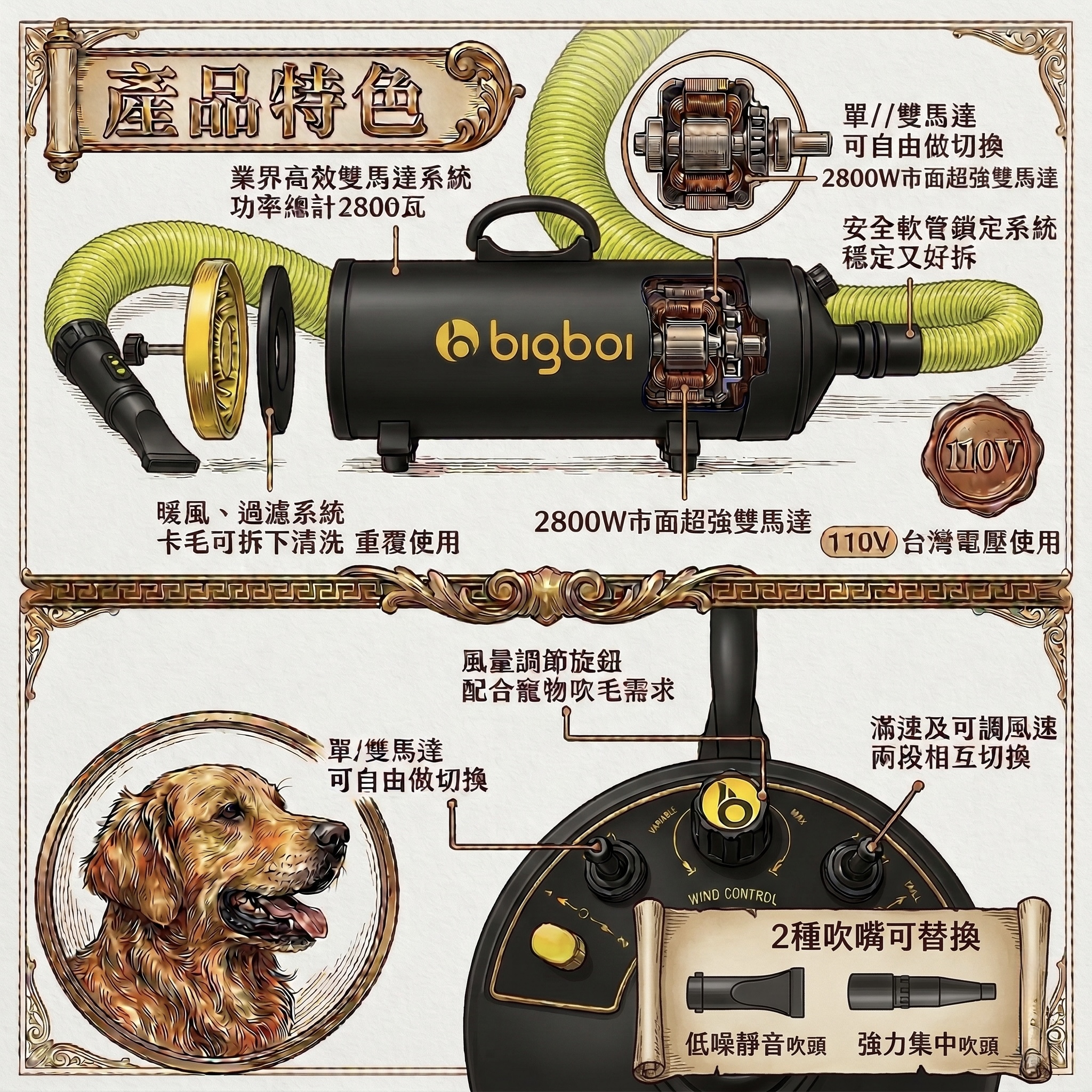 來自澳洲的bigboi 寵物吹風機,專為寵物吹毛設計